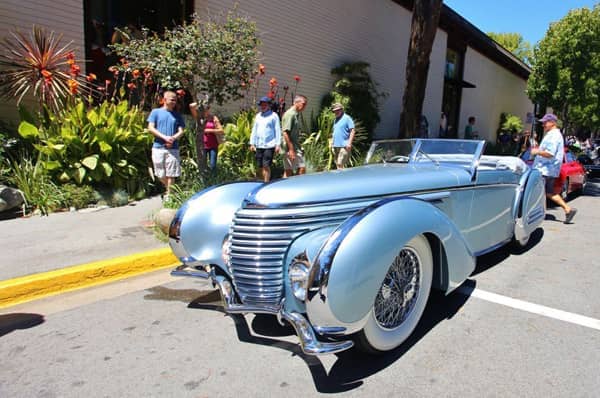 Oh, yes, there are cars too. The quality of cars was exquisite. While not quite up to what you will find at the Quail or Pebble, it is clear that this event is beginning to draw some top shelf entries. Consider the space that the Carmel Mission provides in its courtyard; there is only room for 45. Thanks to the Los Angeles-based Petersen Automotive Museum, attendees were treated to the beauty of a 1953 Ghia-bodied Cadillac once owned by legendary movie actress, Rita Hayworth (which was actually gifted to her by a prince).
