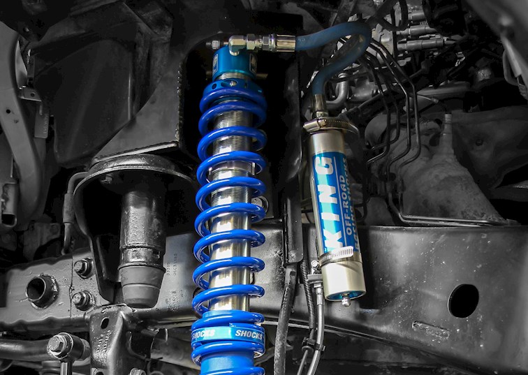 Since highway driving was going to be just as much as part of the equation as the dirt, the suspension needed to be versatile. To accomplish this, progressive-rate coil springs were paired with King 2.5-inch bypass shocks at each corner. While the coils play an important role, the ability to adjust compression zones and fine-tune the rebound on the suspension is what allowed Hazzard to achieve such a dynamic on- and off-road suspension system.